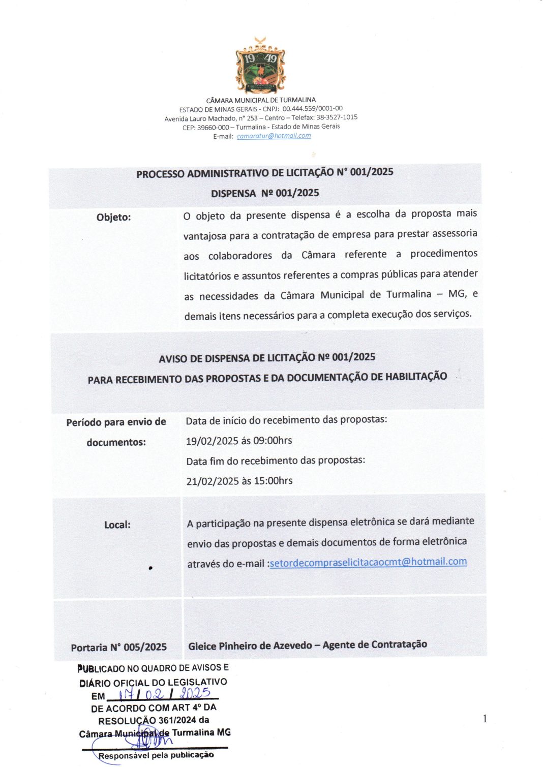 link para o documento completo :  AVISO DISPENSA 001-2025